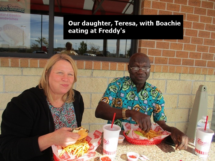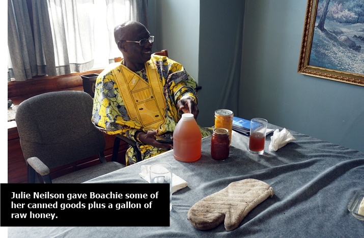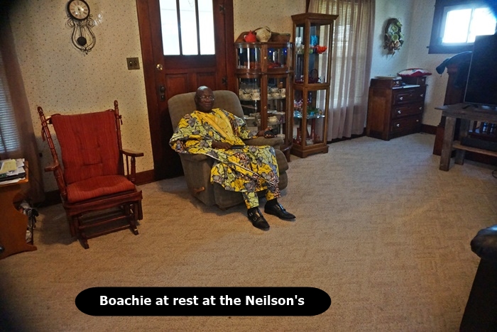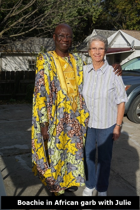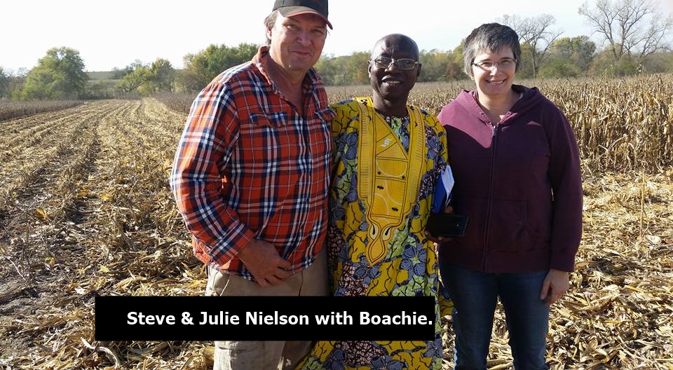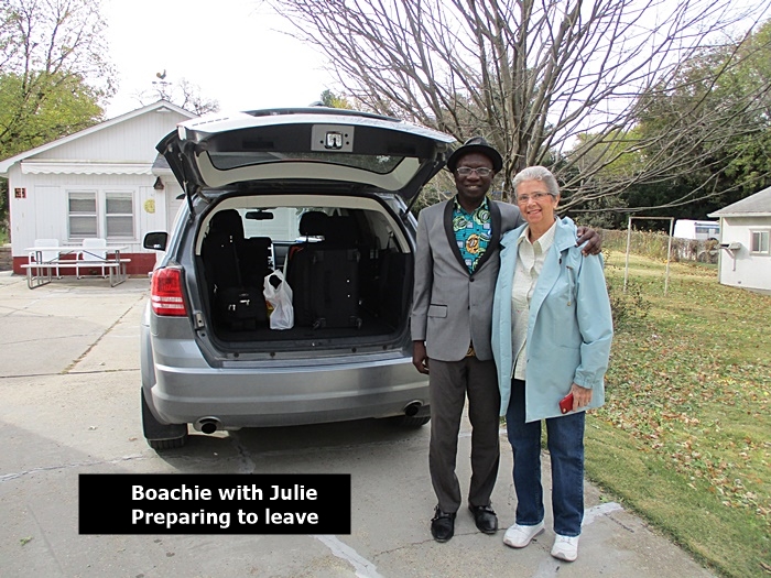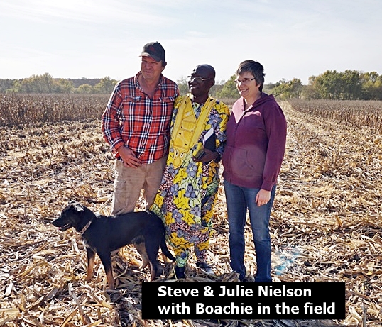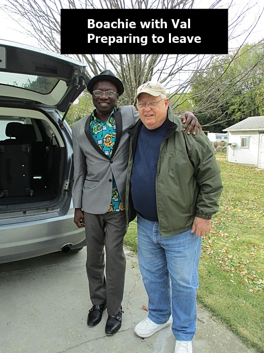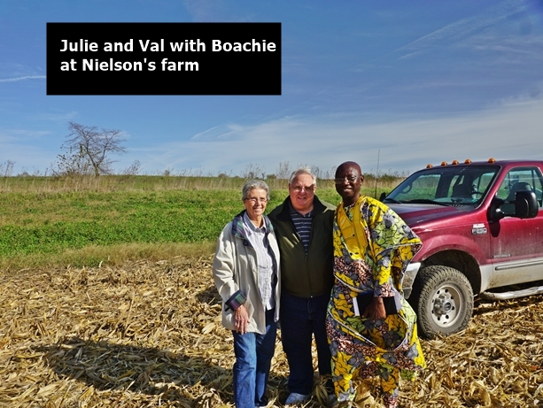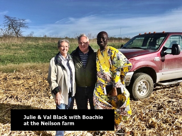 On October 25, 2017, the C.M.M. director, Joseph Boachie Danquah, a.k.a., “Boachie”, came to Shenandoah, Iowa to visit with Julie and Val Black, founders of the ministry. It was a unique time for Boachie as he was privileged to ride with a friend as they combined corn at their farm near Barnard, Missouri. We also had a great time visiting with the present Catholic priest in Shenandoah, Father Raphael, who is also from Ghana, West Africa, as is Boachie. During his stay Boachie visited some who were in need of prayer. He also renewed acquaintances with others who he has known from the past, including Shenandoah Mayor Dick Hunt and his wife Lucille. Boachie left Shenandoah October 31 and went to Dallas, Texas where he teamed up with his wife, Dora, to return to Ghana on Saturday, November 4.